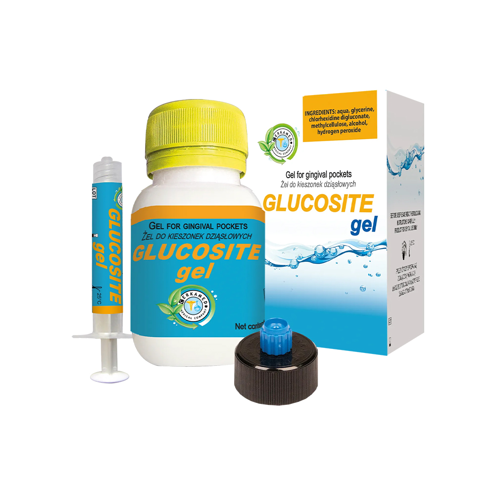 Glucosite Gel je profesionální dentální čisticí gel určený k výplachu a dekontaminaci parodontálních kapes, gingiválních sulků a dalších obtížně přístupných oblastí dutiny ústní během stomatologického ošetření. Využívá kombinaci chlorhexidinu diglukonátu a peroxidu vodíku, které pomáhají redukovat mikrobiální zátěž a podporují hygienu ošetřovaného místa.
