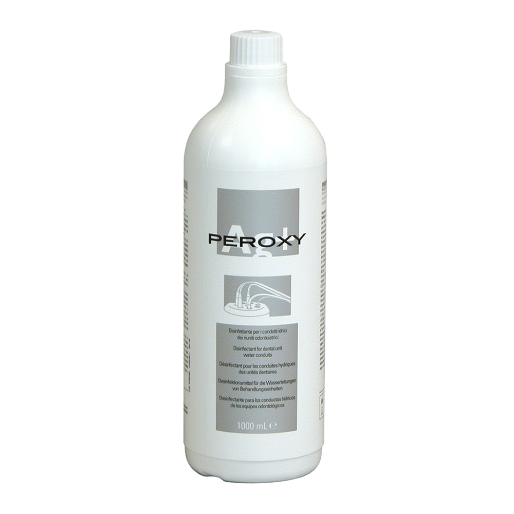 Peroxy AG je dezinfekční roztok na bázi peroxidu vodíku a iontů stříbra, který se používá k dezinfekci vodních okruhů v zubních soupravách a prevenci křížové kontaminace.