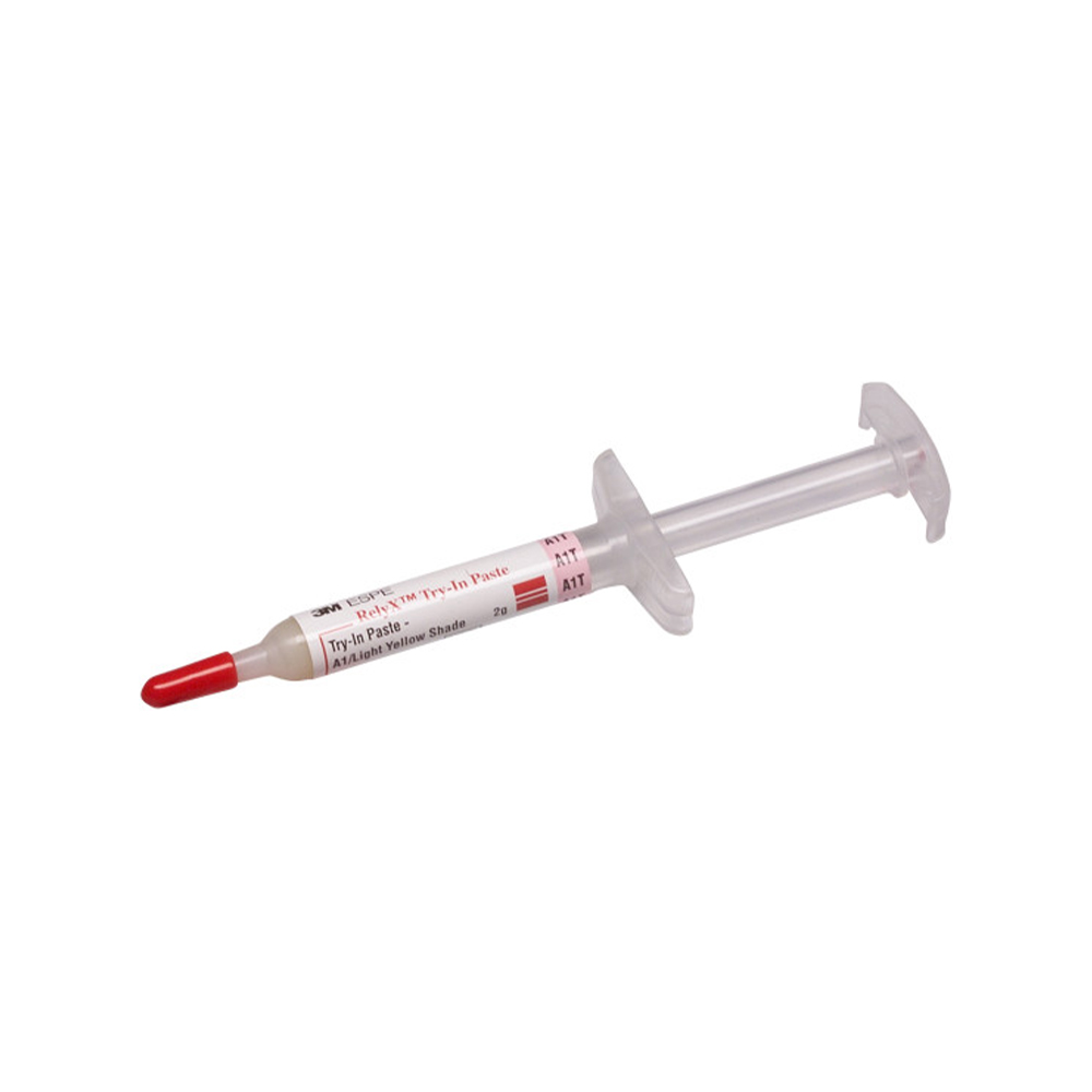 Umožňuje lékaři i pacientovi spolehlivě posoudit výslednou barvu náhrady ještě před použitím fixačního cementu. Pasta je rozpustná ve vodě a nezanechává žádné zbytky, což zajišťuje snadné a rychlé odstranění bez ovlivnění adheze. Nabízí vynikající shodu odstínu s finálně vytvrzeným cementem 3M™ RelyX™ Veneer Cement, čímž přispívá k prediktabilním estetickým výsledkům a vyšší spokojenosti pacientů. Díky jednoduché aplikaci a snadnému čištění je RelyX™ Veneer Try-In Paste ideálním pomocníkem při cementaci porcelánových, keramických a kompozitních fazet.