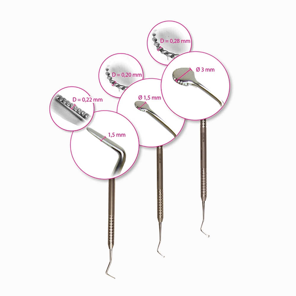 Nástroj určený k preciznímu umisťování retrakční šňůry do gingiválního sulku během přípravy zubních náhrad nebo otiskovacích procedur.