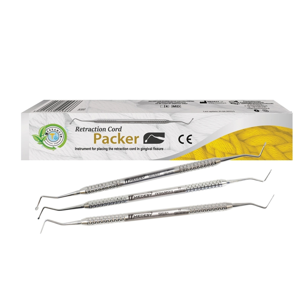 Nástroj určený k preciznímu umisťování retrakční šňůry do gingiválního sulku během přípravy zubních náhrad nebo otiskovacích procedur.
